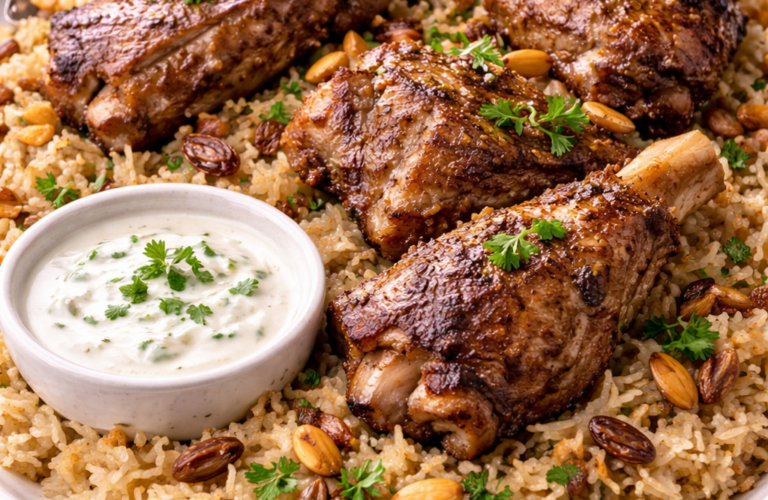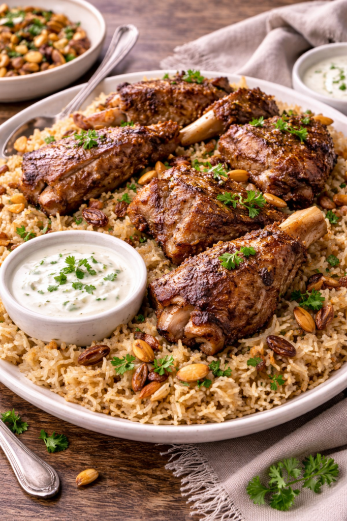 Lamb Mandi with Spiced Rice & Yogurt Sauce