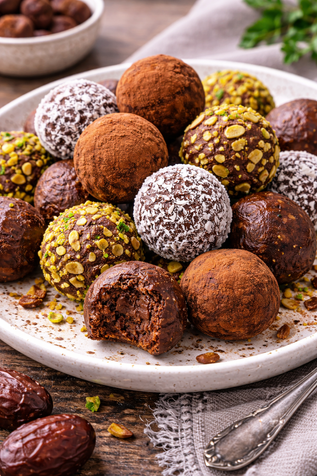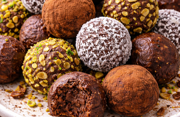 These Chocolate Date Truffles are naturally sweet, rich, soft and slightly fudgy. They taste indulgent — but are made with simple pantry ingredients.